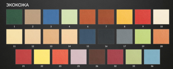 Материал обивки: Кожзам, Экокожа, Ткань (велюр, рогожка), Натуральная кожа.